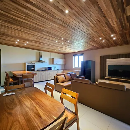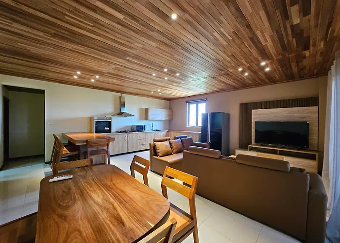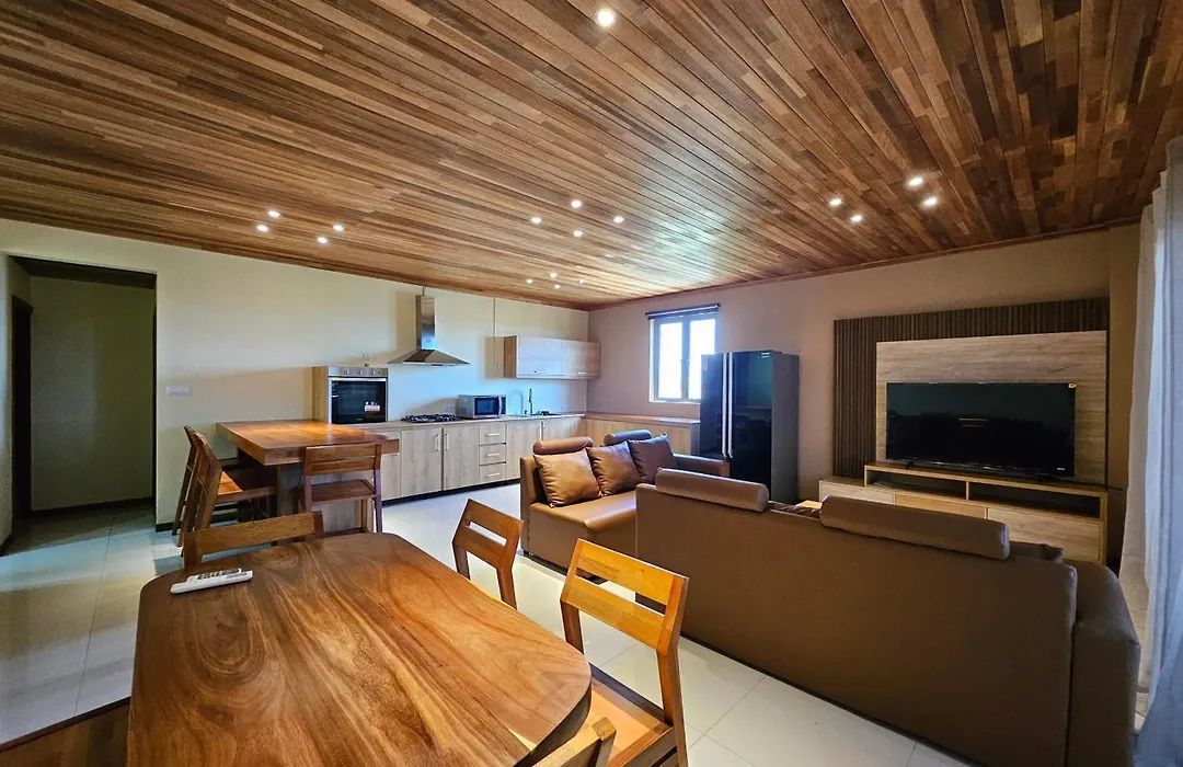 Surplombant les montagnes, Seashells Apartment - Penthouse Grand Baie se trouve à 14 minutes de marche du Sportfisher & Co Ltd à Grand Baie. L'appartement dispose d'une terrasse avec une table à manger.